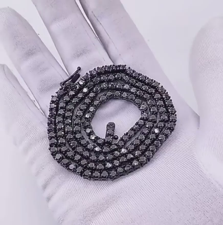 Solid 925 sterling silver black rhodium. Handcrafted GRA certified black VVS moissanite. Passes diamond tester. Lifetime warranty.